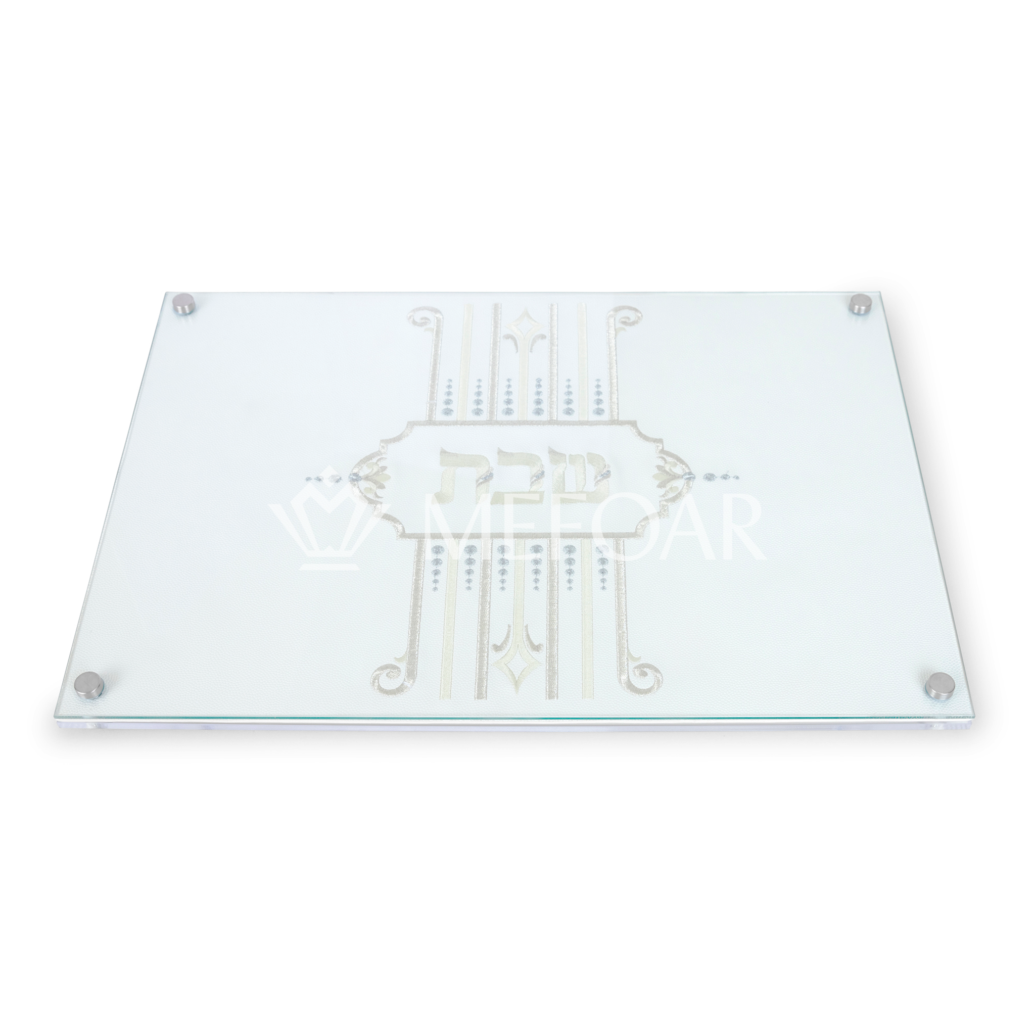 Elevate your Shabbat table with our sleek acrylic challah boards, designed to match our challah cover collection. Available in two sizes 16" x 10.8" and 12" x 11"(perfect for bar mitzvah boys). With stylish gold or silver leg options. Durable, modern, and beautifully coordinated