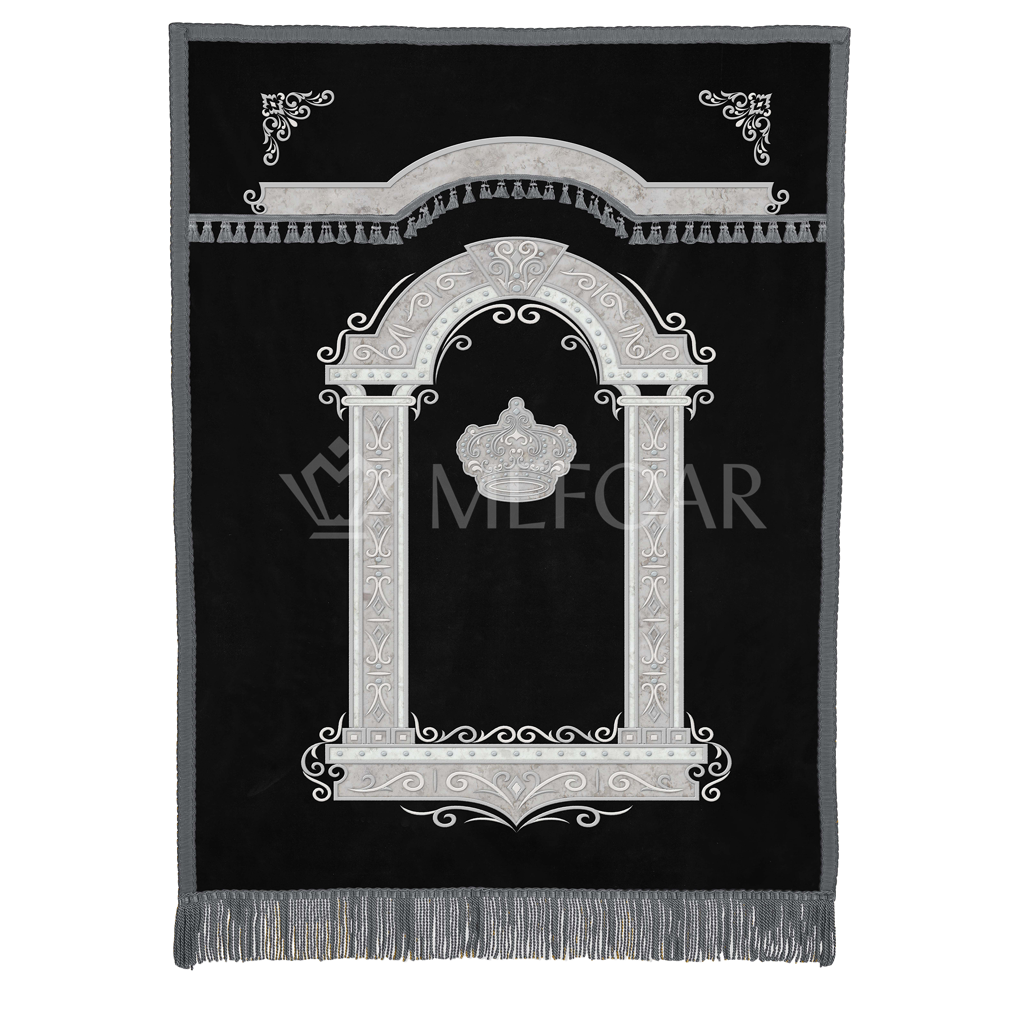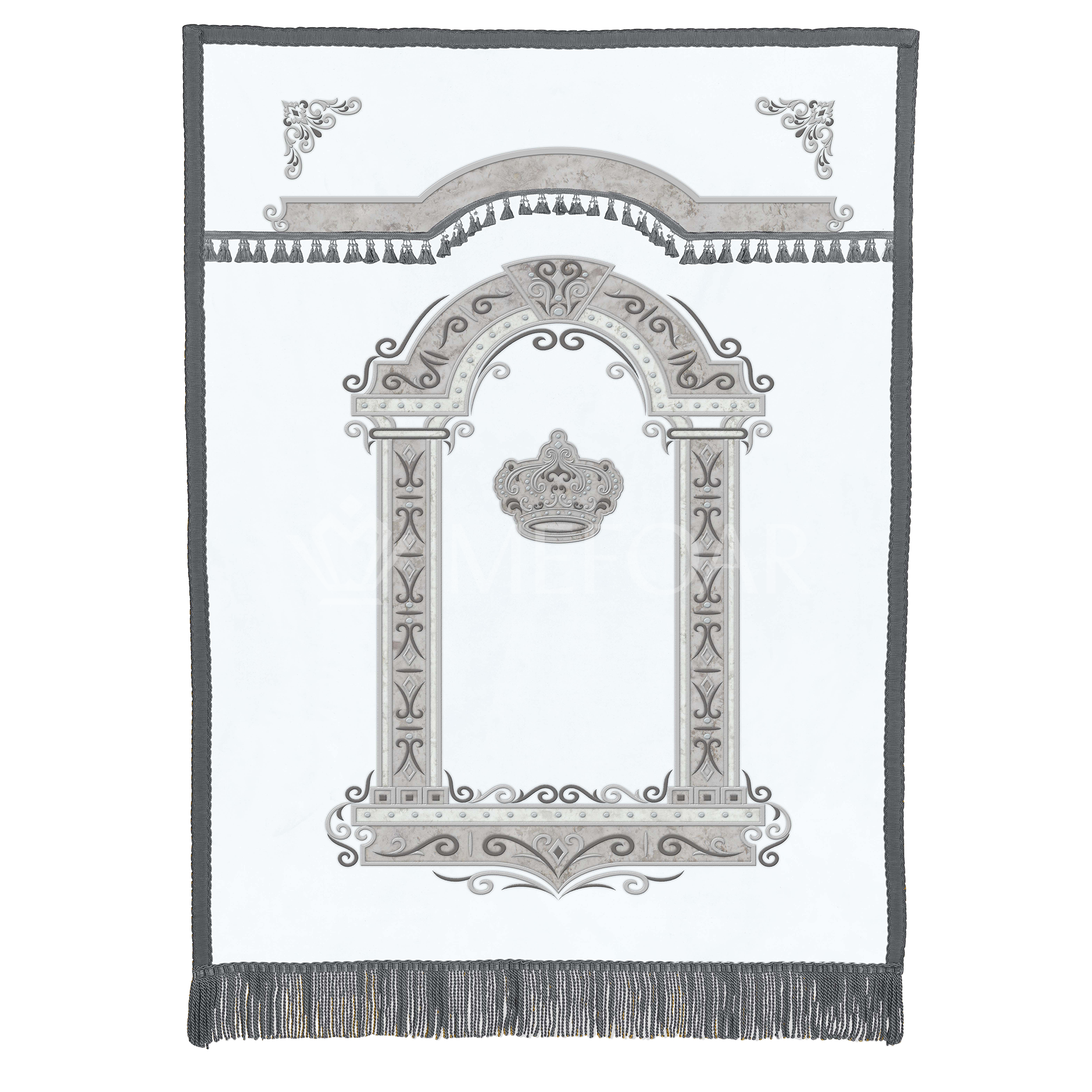 Our Elegant Ma Tovu Black Parochet features a rich velvet fabric; it is decorated with a silver embroidered crown, and embellished with Swarovski crystals.
