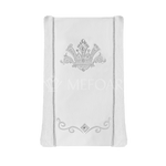 Our Classic mantle features a rich Leather and Fur; it is decorated with Silver embroidery, and embellished with Swarovski crystals.