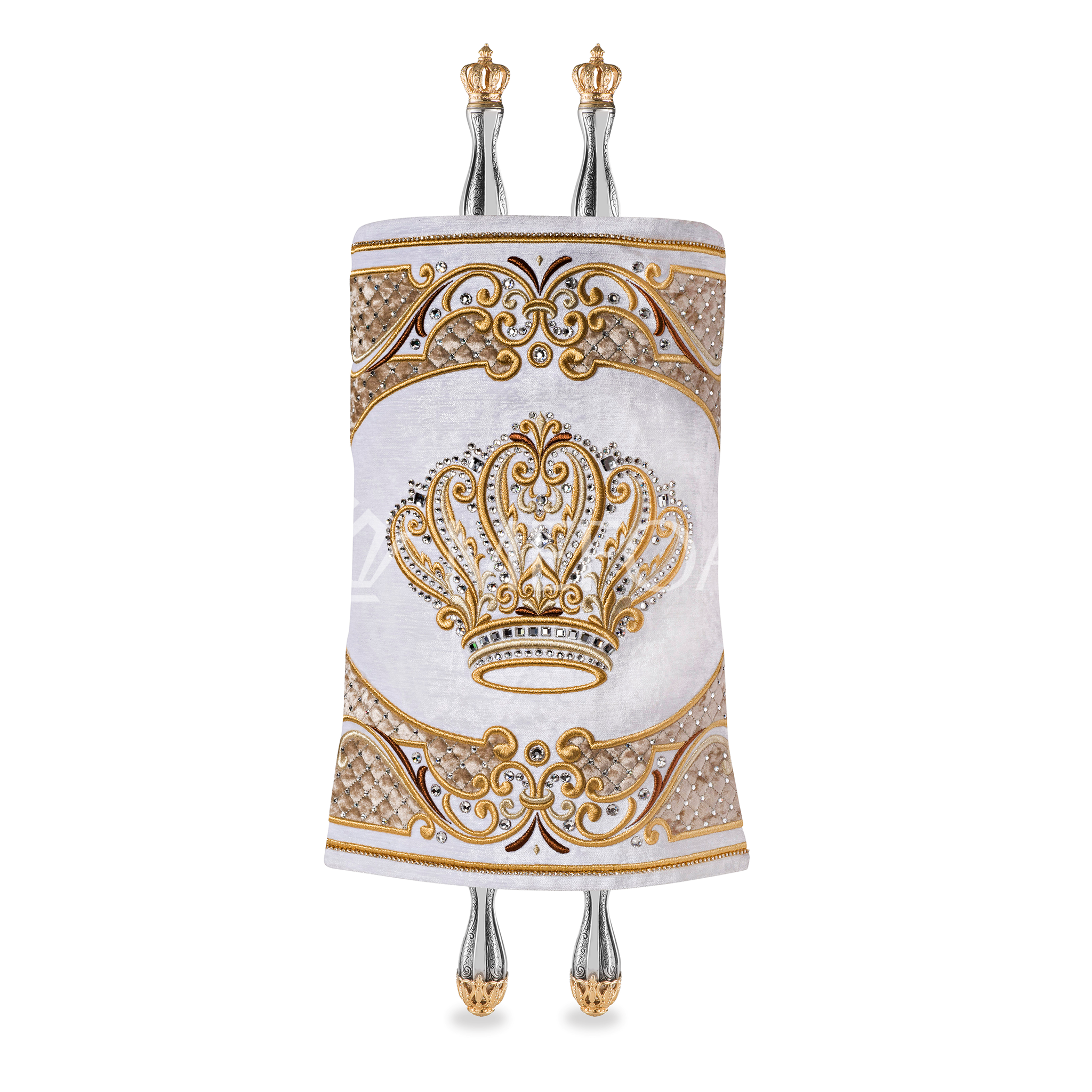 Velvet Torah Mantle - Style 805-White and Gold